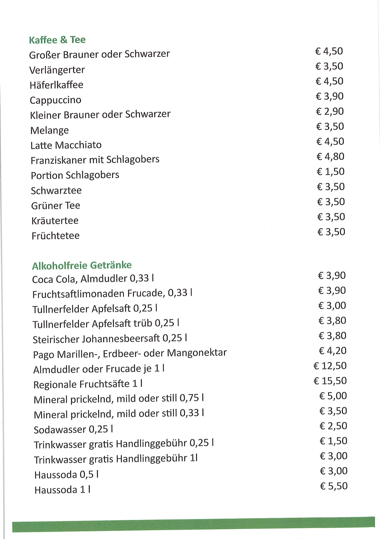 Für jede Änderung bzw. zusätzliche Beilage wird € 1,00 verrechnet.