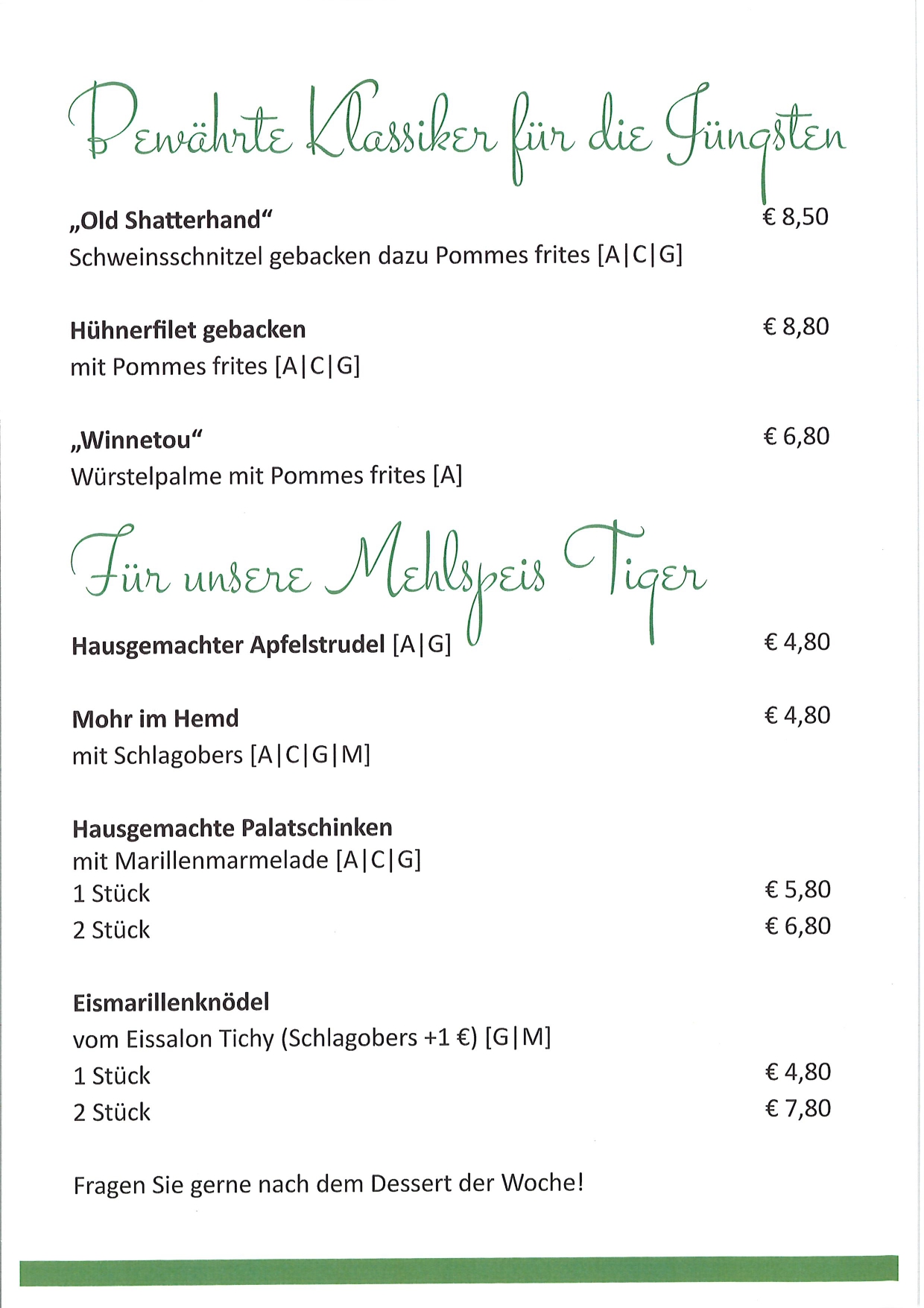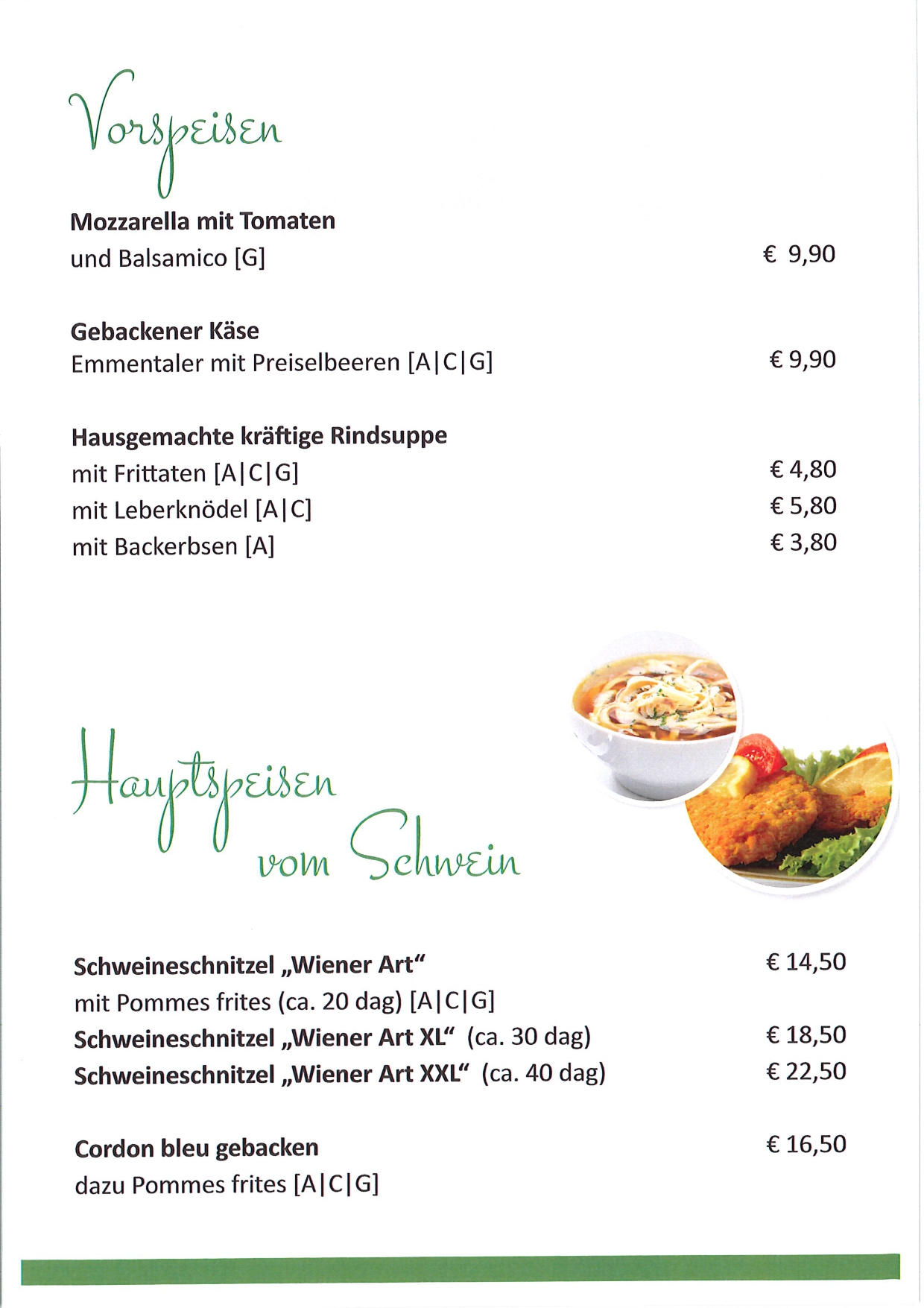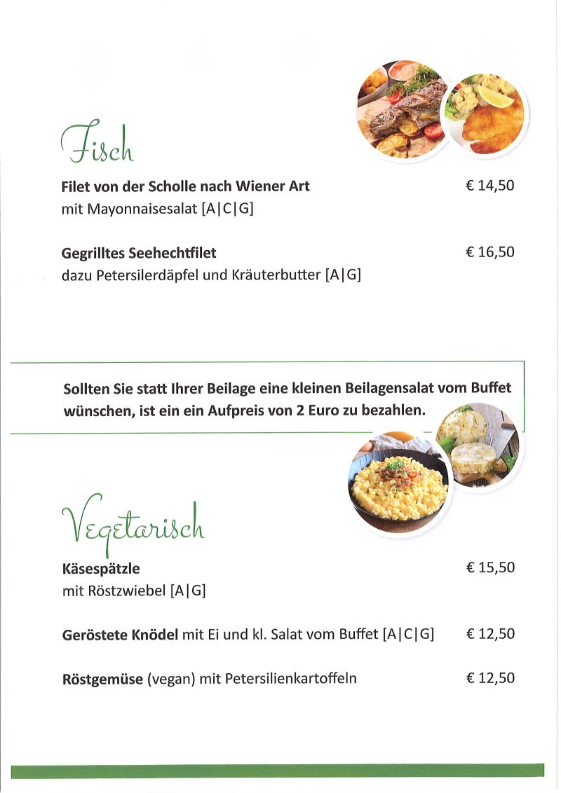 Zusätzlich zu den À-la-carte-Speisen gibt es täglich Mittagsmenüs zur Auswahl!